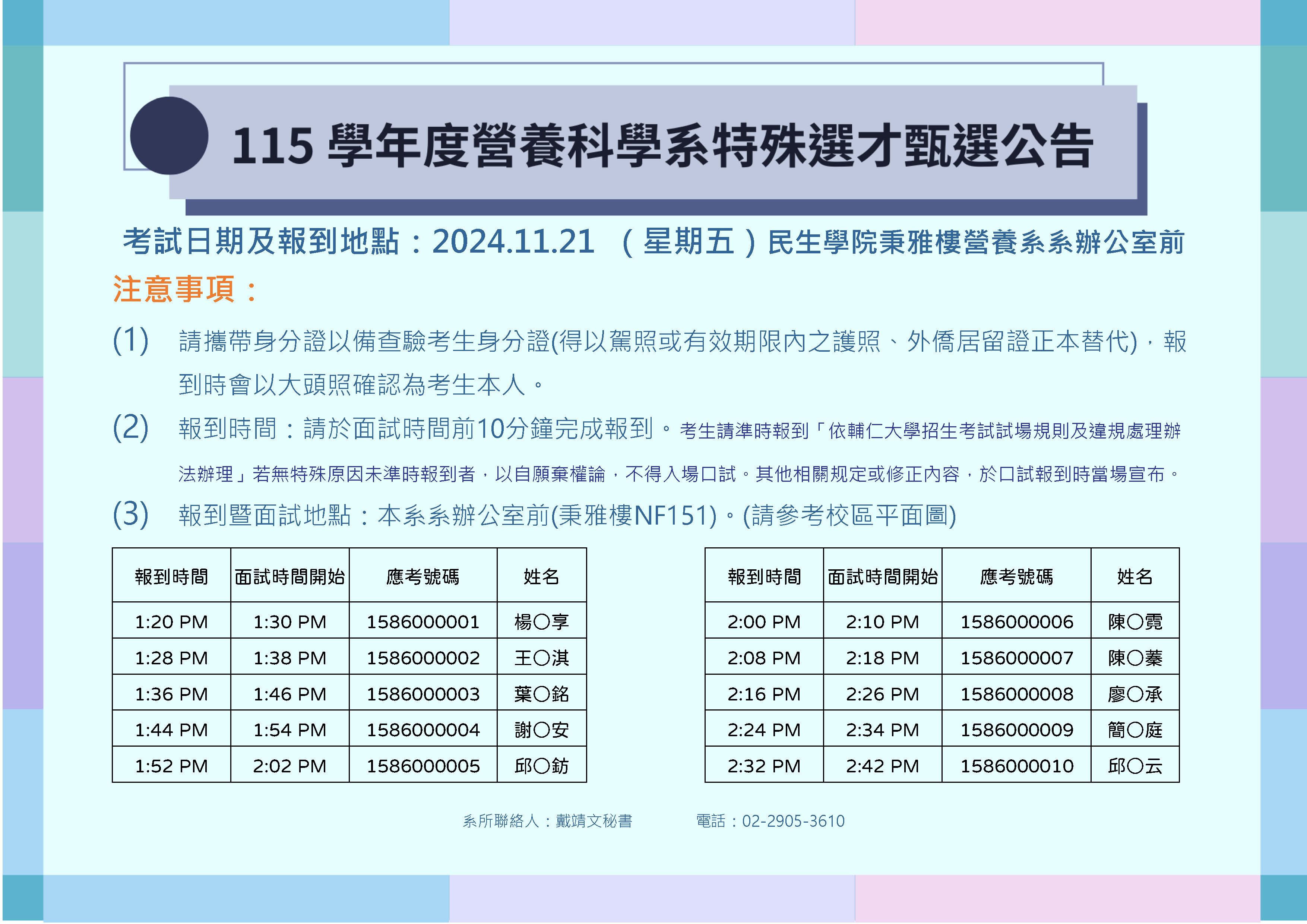115學年度特殊選才口試公告