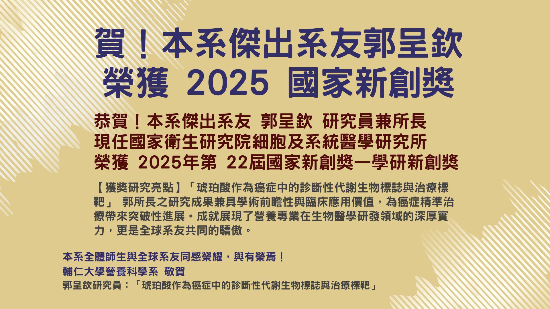賀!本系傑出系友榮獲 2025 年第 22 屆國家新創獎(學研新創獎)