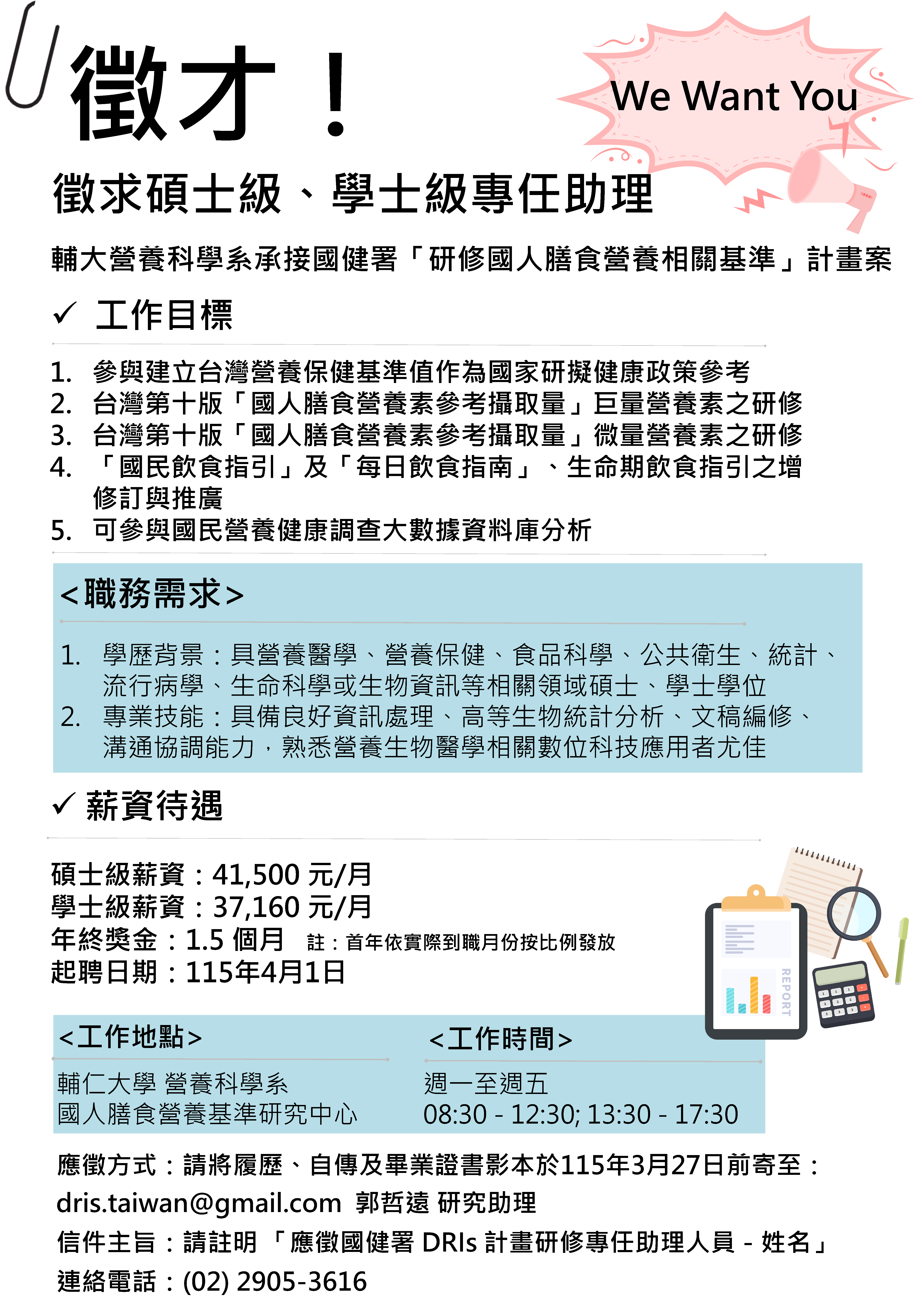 目前研究計畫團隊正在徵求研究助理,歡迎對研修工作有興趣的系友一同參與本計畫,也歡迎將此徵才資訊分享給其他有興趣參與研修的同好們。